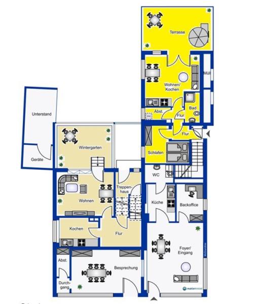 Die damalige große Eigentümerwohnung (über zwei Ebenen und mit zusätzlichem "Sommergarten") wurde ebenfalls durch eine Nutzungsänderung mit dem Titel "gewerbliche Ferienwohnung" beantragt und genehmigt.