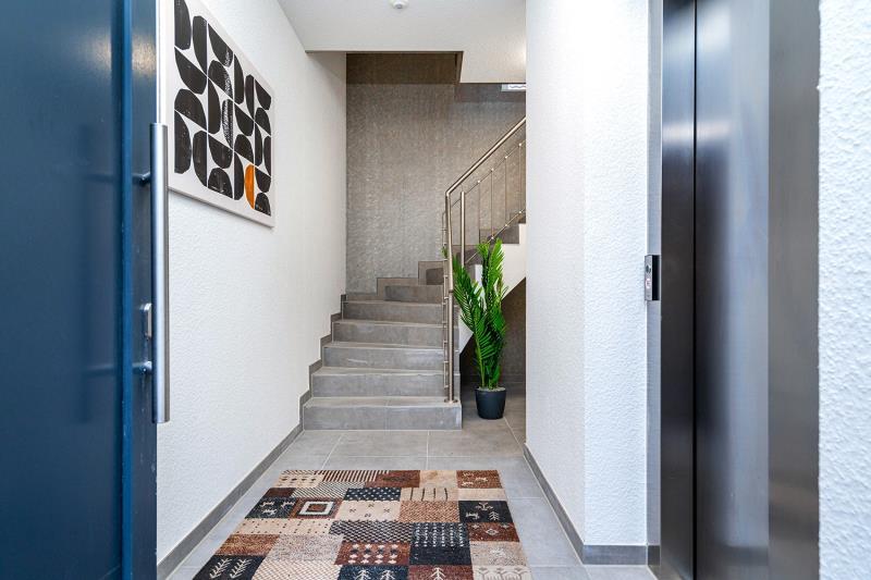 Die Wohnung befindet sich im obersten Geschoss eines aufwendig sanierten Wohn- und Geschäftshauses mit insgesamt 7 Einheiten. Das Gebäude wurde zwischen 2022 und 2024 umfassend modernisiert – inklusive Dach, Leitungen und Dämmung. Der Zugang zur Wohnung erfolgt bequem und barrierefrei über das neue Treppenhaus mit Aufzug.