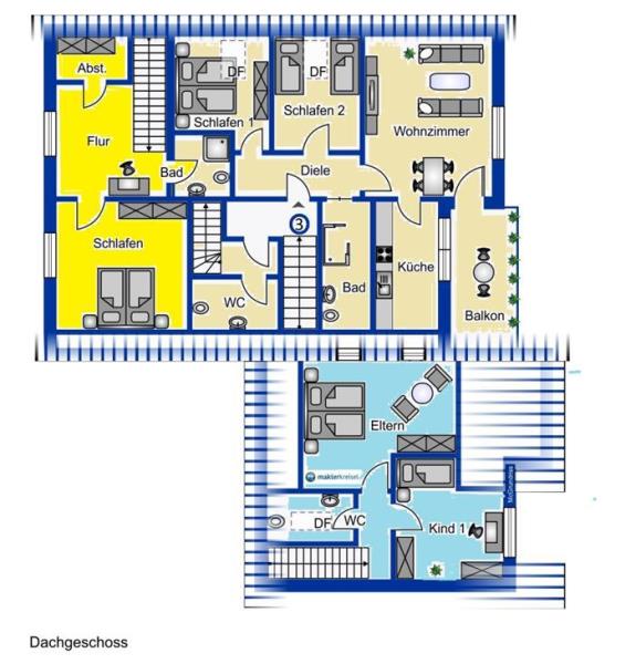Die kleinste Wohnung Nr. 4 über zwei Ebenen und mit separatem Zugang ist ebenfalls dauerhaft vermietet.