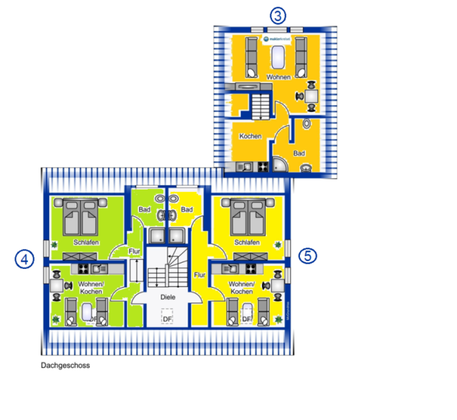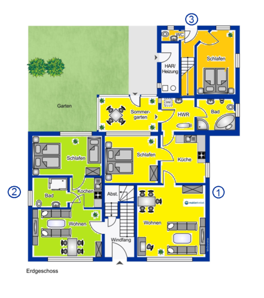 Das Mobilar (außer in Wohnung 1) und Inventar ist im Kaufpreis enthalten, wobei in Wohnung 4 und 5 aktuell keine Einbauküche vorhanden ist, die Anschlüsse hierfür sind allerdings vorhanden.
