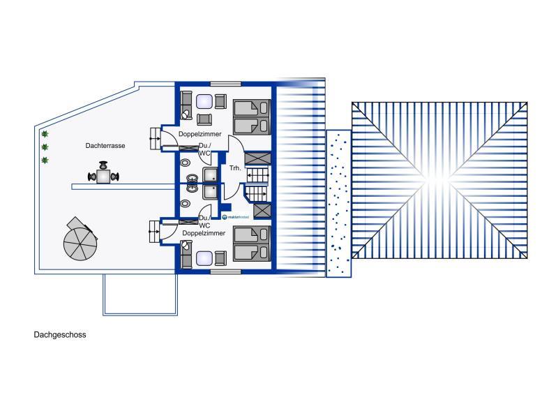 Das Objekt bietet neun individuell gestaltete Gästezimmer in verschiedenen Kategorien, einen einladenden Empfangs- und Frühstücksbereich, einen Garten mit Sitz- und Grillmöglichkeiten sowie einen vollständig unterkellerten Funktionsbereich mit Technik-, Wasch- und Lagerräumen. Das Hotelinventar (mit Ausnahme einzelner privater Gegenstände) ist im Kaufpreis enthalten.