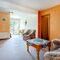 Die zweite Wohneinheit ist von der Außenseite des Hauses zu erreichen, barrierefrei und wie folgt aufgeteilt: Eingangsbereich, Küche mit Einbauküche, Wohnzimmer mit Ausgang auf die Terrasse und in den Garten, Badezimmer mit Dusche sowie drei Schlafzimmer.