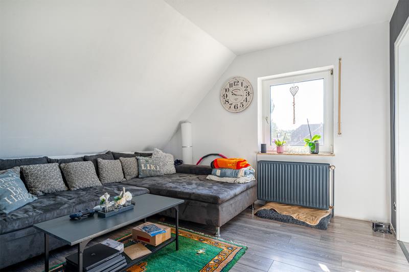 Das ursprüngliche Einfamilienhaus wurde nachträglich in zwei Wohneinheiten aufgeteilt, sodass sich aktuell im Erdgeschoss auf ca. 82 m² und im Dachgeschoss auf ca. 60 m² Wohnfläche jeweils eine Einheit befindet.