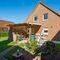 Im Außenbereich befindet sich eine massive Garage mit angrenzendem Fahrradabstellraum und Werkstatt. Der Garten ist eingefriedet und pflegeleicht angelegt.
