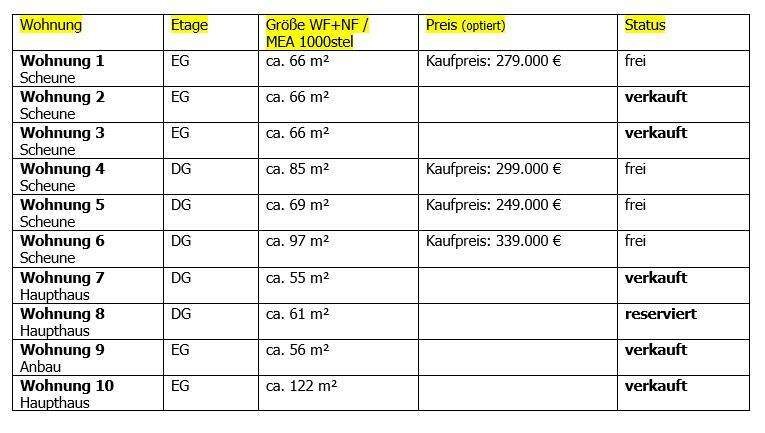 Sämtliche Einheiten haben Ihr eigenes Grundbuch (Teileigentum nach WEG) und sind mit einer Einbauküche ausgestattet.