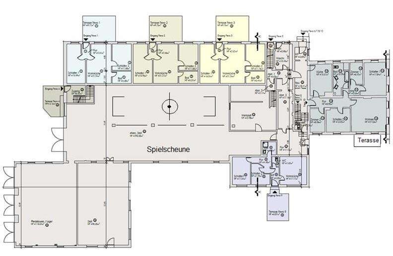 Sie erwerben allerdings nicht nur eine eigene Ferienwohnung, sondern ebenfalls Gemeinschaftsflächen, welche Sie mit Ihren Miteigentümern nutzen können. Hierzu zählt die Spielscheune, welche beispielsweise mit einem Soccer-Court, Trampolin, Kickertisch, Basketballkorb und Tischtennisplatte ausgestattet wird.