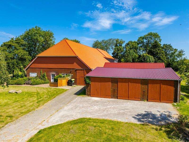 Weiterhin gibt es zwei gemeinschaftliche Nebengebäude direkt angrenzend zur Scheune und 15.000 m² Grünland zum Ferienhof dazu.