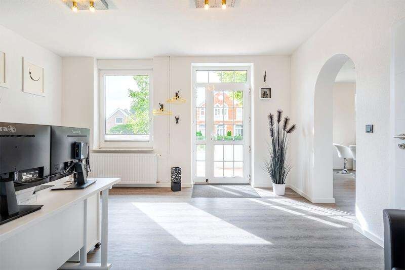 Direkt in der Bärenstadt Esens bieten wir Ihnen hier eine flexible Immobilie zum Kauf an. Die stilvolle Stadtvilla aus dem Jahre 1900 wurde Mitte der 80er Jahre saniert, 2024 erneut umfangreich modernisiert und eignet sich heute perfekt als Wohn – und/oder Geschäftshaus. Auf rund 140 m² Wohnfläche bietet der Grundriss eine individuelle, flexible Aufteilungsmöglichkeit.
