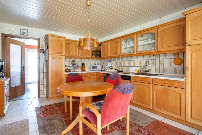 Die modernisierungsbedürftige Immobilie mit einer reinen Wohnfläche von 123?m² bietet bei Bedarf und mit relativ wenig Aufwand im Erdgeschoss ein "ebenerdiges Wohnen". Neben dem großen Wohn- und Esszimmer besticht u.?a. auch die Küche mit angrenzender Terrasse (Bj. 1998, und herrlichem Blick in den Garten. Die ursprüngliche Garage wurde umfunktioniert und zuletzt als kleiner Frisörsalon betrieben.