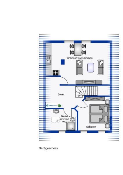 Flur, Wohnen / Essen / Kochen, Schlafzimmer, Duschbad
