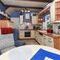 Beide Einheiten verfügen jeweils über ein Schlafzimmer und ein Badezimmer. Die Erdgeschosswohnung bietet darüber hinaus ein separates Wohnzimmer sowie eine eigene Küche. Die Oberwohnung – mit freigelegten Kehlbalken – besticht durch eine geräumige Wohnküche, von der aus Sie einen herrlichen Blick über den Hafendeich in Richtung Nordseeinseln genießen können.
