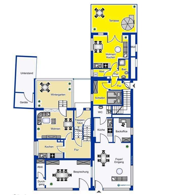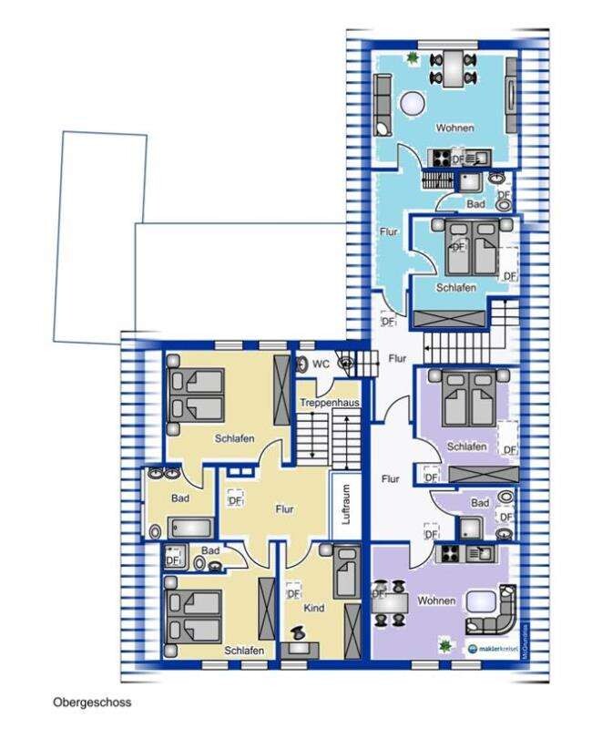 Die gesamte erworbene Wohnfläche beträgt 437 qm, welche sich wie folgt aufgeteilen: