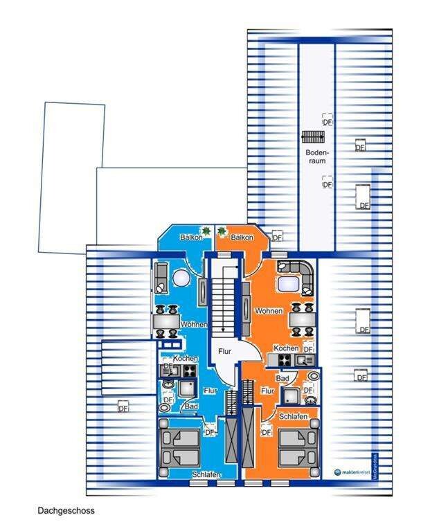 Die beiden Dachgeschosseinheiten haben einen eigenen Balkon.