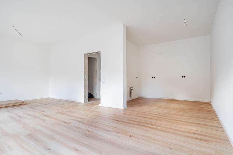 Der hintere Neubau enthält neben des Treppenhauses mit Aufzug vier weitere, großzügige Wohnungen. Alle Einheiten können in Kürze schlüsselfertig übergeben werden, eine Käuferprovision fällt nicht an.