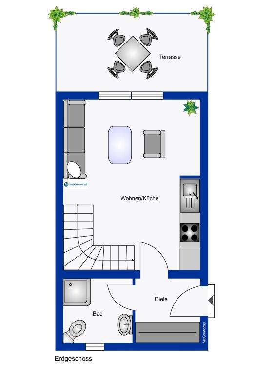 Der pflegeleichte Außenbereich mit Terrasse, Schuppen für Fahrräder und Gartengeräte sowie ein KFZ-Einstellplatz direkt am Haus runden dieses tolle Angebot ab.