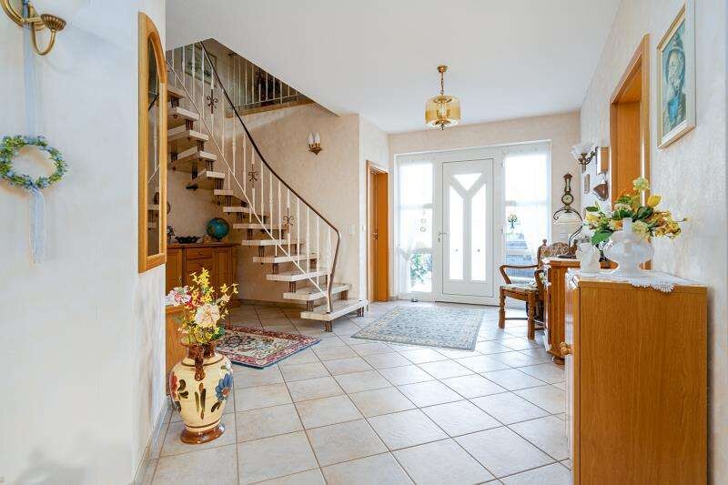 Im direkt angrenzenden Nebengebäude (ca. 73 qm Nutzfläche) sind neben einer Werkstatt und einem HWR-Raum u. a. die Garage (mit elektrischem Sektionaltor) integriert, so dass Sie immer trockenen Fußes ins Haupthaus gelangen.