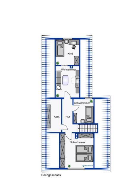 Dachgeschoss: 4 (Schlaf)-Zimmer, Flur