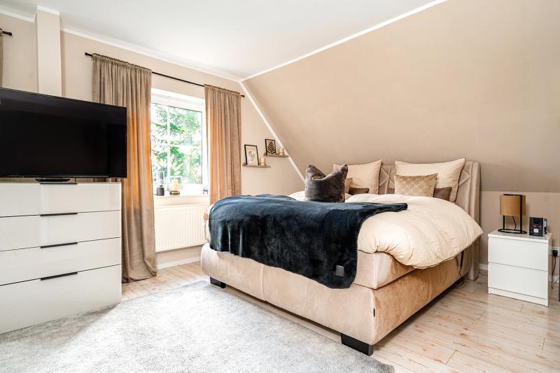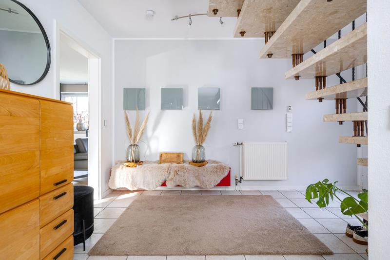 Der Spitzboden ist vollständig gedämmt. Beheizt wird die Immobilie über eine neuwertige Gas-Brennwerttherme (Bj. 2023) mit Warmwasserspeicher und teils Fußbodenerwärmung.
