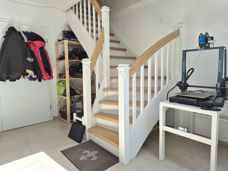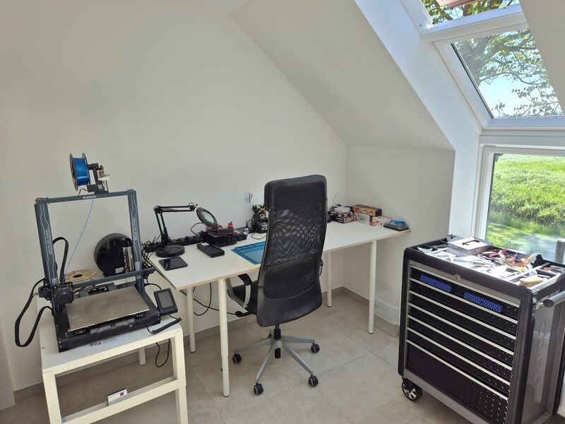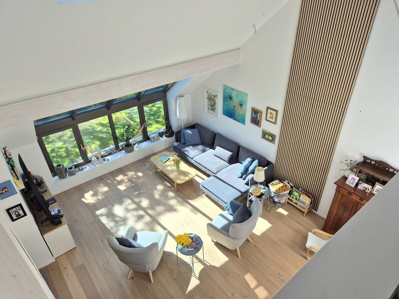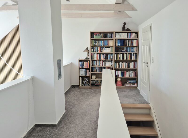 Aktuell wird die dazugehörige Einliegerwohnung (mit separatem Eingang) im ehemaligen, hinteren Scheunentrakt als Büro genutzt. Dieser ca. 60m² große Bereich ist 2024 fertiggestellt worden und verfügt über Einbauküche, Duschbad und Schlafbereiche.